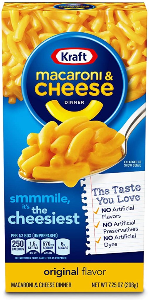 Najpopularniejsza dziś w USA wersja mac&cheese to jednak nie włoski makaron posypany serem, a beszamelu też zazwyczaj nie robi się w domu. Najpopularniejsza wersja to pochodzi z pudełka, pudełko zaś – z Kanady. A konkretnie pochodził stamtąd James Kraft, założyciel firmy Kraft Foods: to właśnie ona produkuje te słynne niebieskie kartony, które dla wielu ludzi są w zasadzie synonimiczne z mac and cheese.