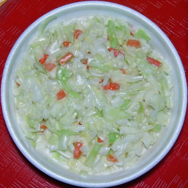 Majonez to francuski wynalazek z drugiej połowy XVIII wieku, więc coleslaw jaki znamy dzisiaj pojawił się nieco później. Kapusta jest jedynym stałym elementem przepisu, a można dodawać do niej inne posiekane warzywa (jak marchewka, cebula czy koper włoski), kwaśne jabłka, a czasem nawet egzotyczne składniki jak curry czy pak choi.