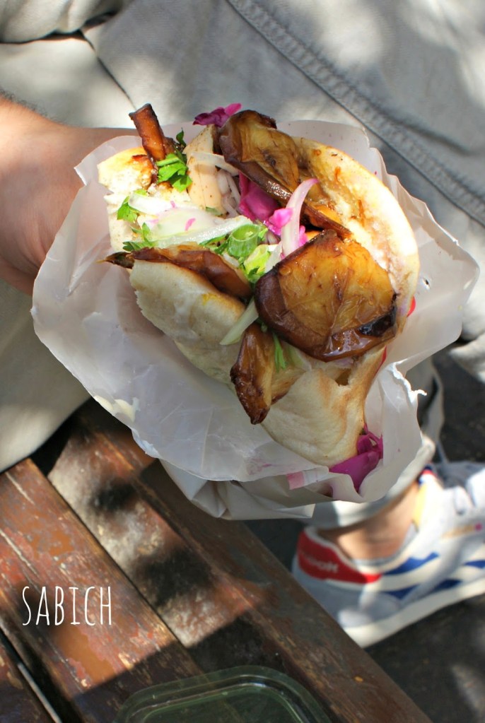 Jedna z najpyszniejszych kanapek świata przywieziona została do nowo powstałego państwa Izrael na przełomie lat 40. i 50. XX wieku przez irackich Żydów zmuszonych do opuszczenia swojego kraju z powodu szerzącej się w nim antysemickiej przemocy. Jej nazwa pochodzi prawdopodobnie od arabskiego imienia (oznaczającego „świt”), które nosił Sabich Tsvi Halabi – właściciel restauracji w Ramat Gan, gdzie kanapka miała pojawić się po raz pierwszy. Główne składniki sabich – jajka na twardo i smażone bakłażany – iraccy Żydzi szczególnie chętnie jedli w szabat, kiedy nie wolno gotować i trzeba wykorzystać pozostałości z poprzedniego dnia. Kluczowym składnikiem jest także sos amba – iracka wersja mango chutney, przywieziona z Indii przez irackich kupców żydowskich. Kanapkę uzupełniają typowo izraelskie dodatki – hummus, tahina, pikle i tzw. „sałatka izraelska” (którą równie dobrze nazwać by można sałatką arabską) z pomidorów i ogórków.