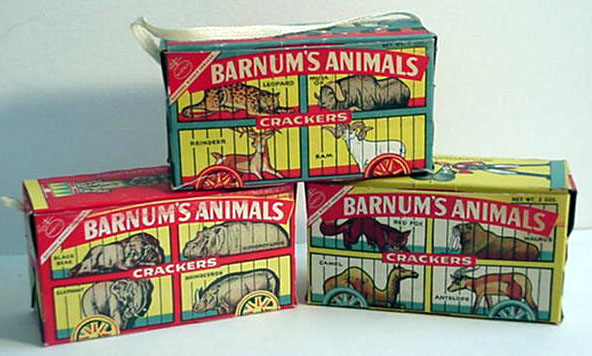 Czy zatem to Barnum – twórca Barnum & Bailey Circus, którego nazwisko kojarzone jest także z innymi przekąskami sprzedawanymi podczas cyrkowych występów jak popcorn czy słone orzeszki – stał za wynalazkiem krakersów w kształcie zwierząt? Bynajmniej i nigdy nie otrzymał ani centa ze sprzedaży Barnum’s Animals. Jak opowiadają pracownicy Barnum Museum w Bridgeport, historia wyglądała następująco: w 1889 roku Barnum wpadł na szalony pomysł tournee po Wielkiej Brytanii. Kiedy jemu i jego wspólnikowi Jamesowi Baileyowi udało się wsadzić zwierzęta na statek i przewieźć przez ocean, brytyjscy producenci istniejących już na tamtejszym rynku ciasteczek w kształcie zwierząt wyczuli nosem marketingową szansę i nazwali je właśnie Barnum’s Animals.
